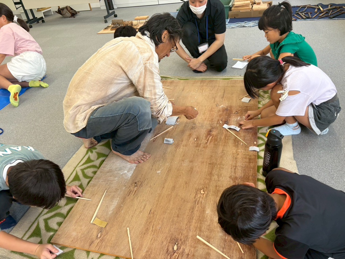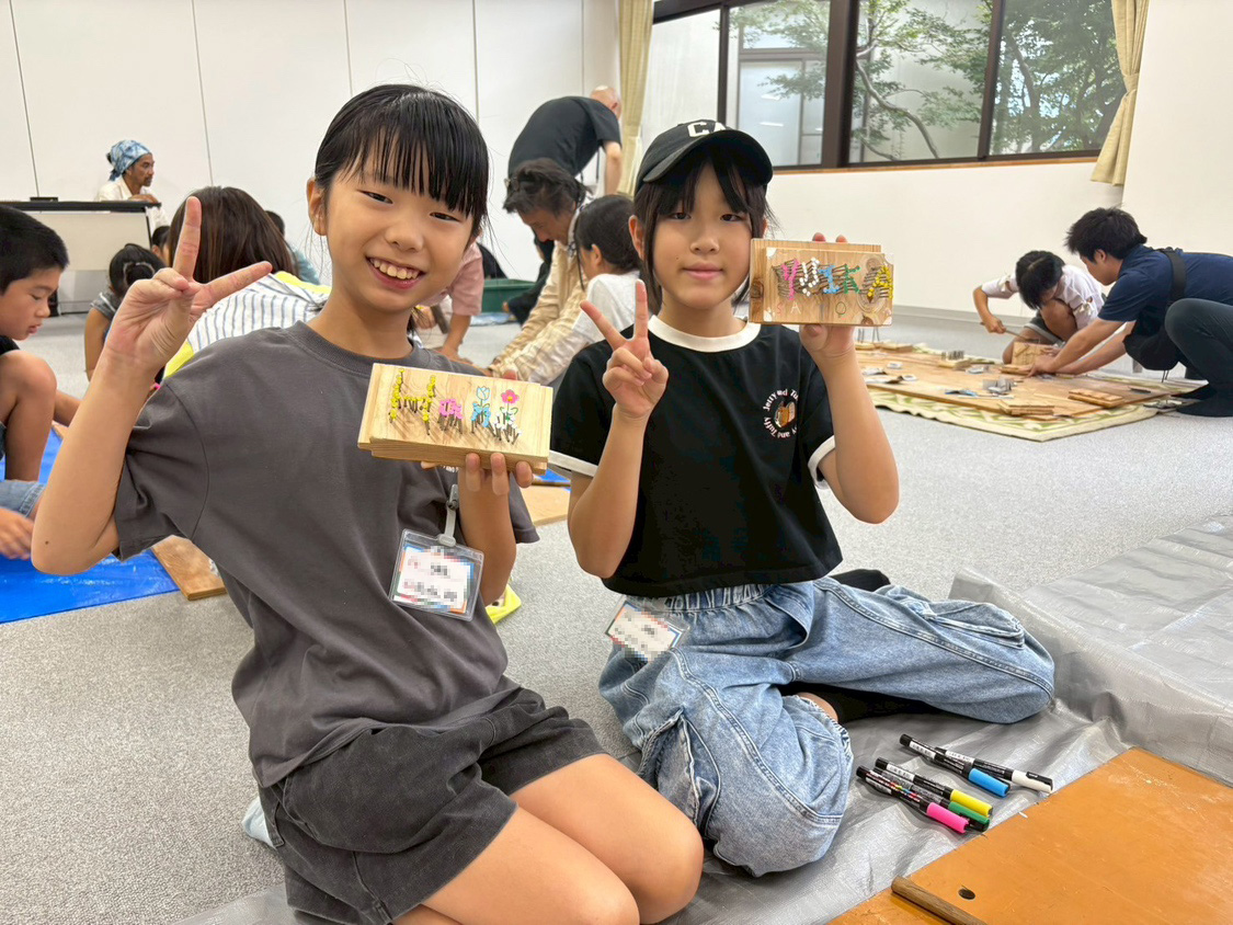 木のお箸づくりと、廃材を活用した看板制作に挑戦。長時間にわたる作業でしたが、子どもの目線に立ってくださる先生の声かけで子どもたちの集中力も持続。悔しさで涙する子がいたり、完成品を誇らしげに見せ合ったり 、子どもたちの情熱が溢れる時間となりました。
