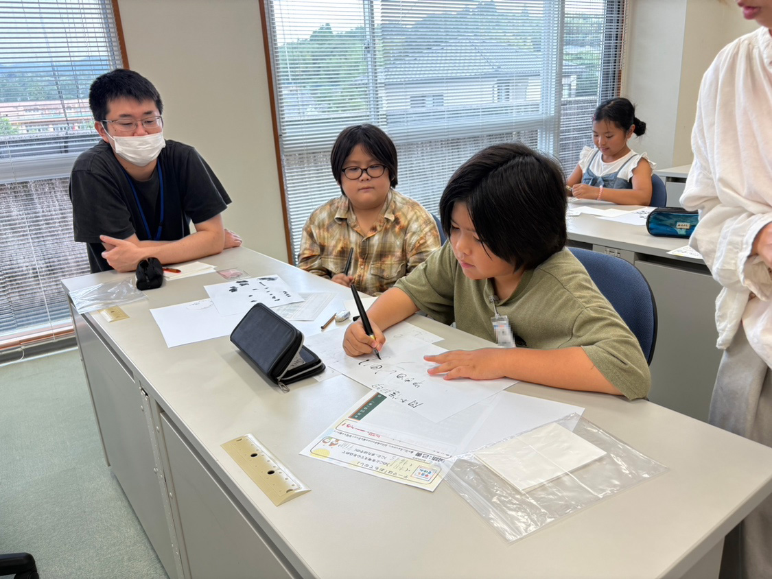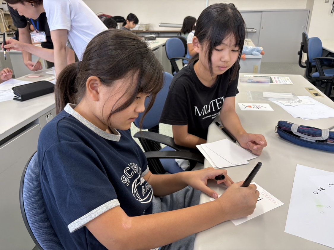 テーマは「文字で自分を表現する」。自由に筆を動かし、思いを文字にのせる体験は、子どもたちの想像力を刺激しました。上手い・下手の正解ではなく、自分の中から出てくるものを信じて書く という新しいアプローチに、子どもたちは最初こそ戸惑いながらも、最後には堂々と自分らしい文字を描いていました。