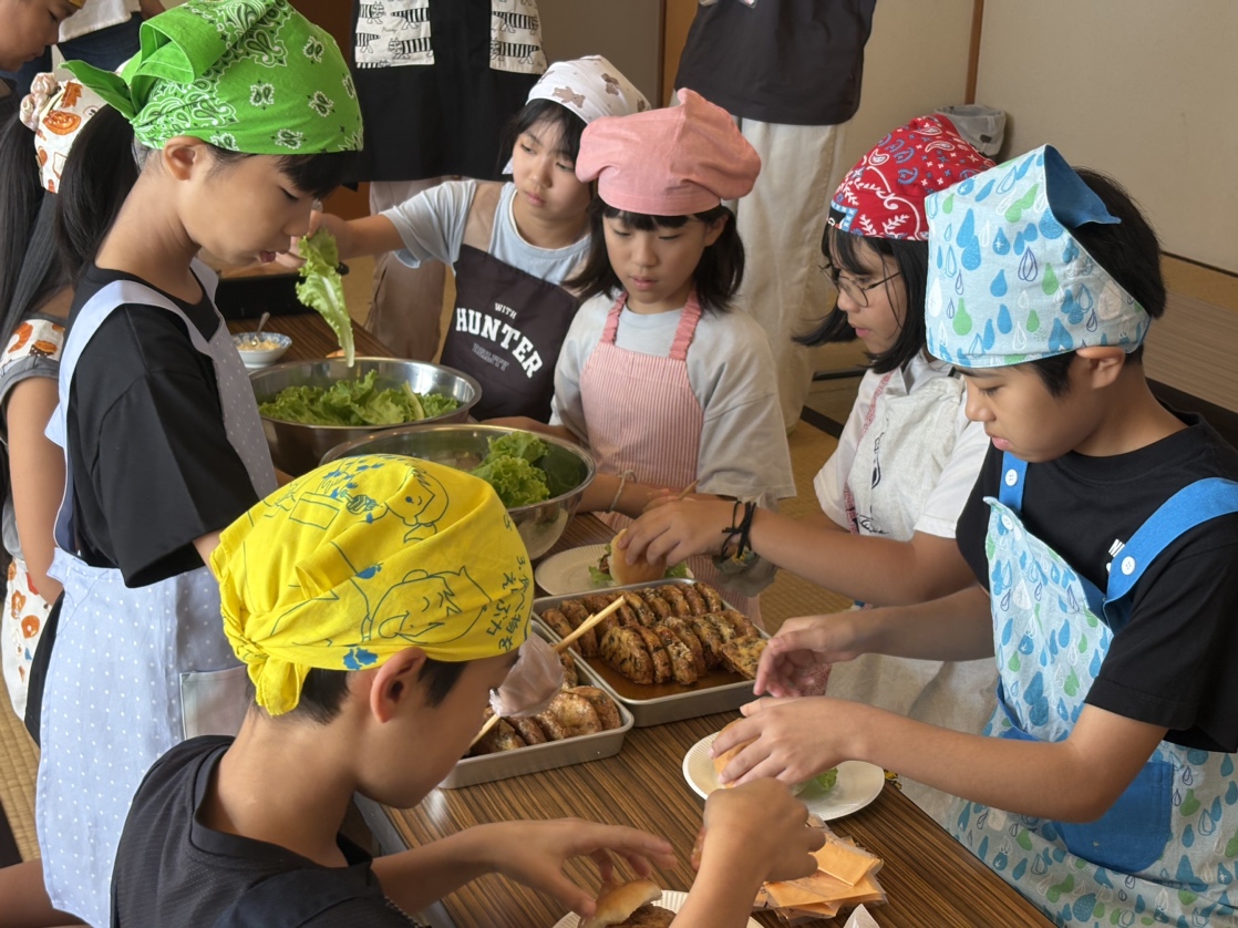 毎日の昼食は地域の方々が心を込めて手作りしてくださいました。仕上げの一手間は子どもたちの担当。異年齢の子どもたちが協力し合いながら、食事の準備も楽しい学びの時間となりました。全体アンケートでも「ゆっくり食べられる給食」「何度もおかわりできる給食」 が上位を占め、食べる環境の大切さを改めて感じる結果となりました。