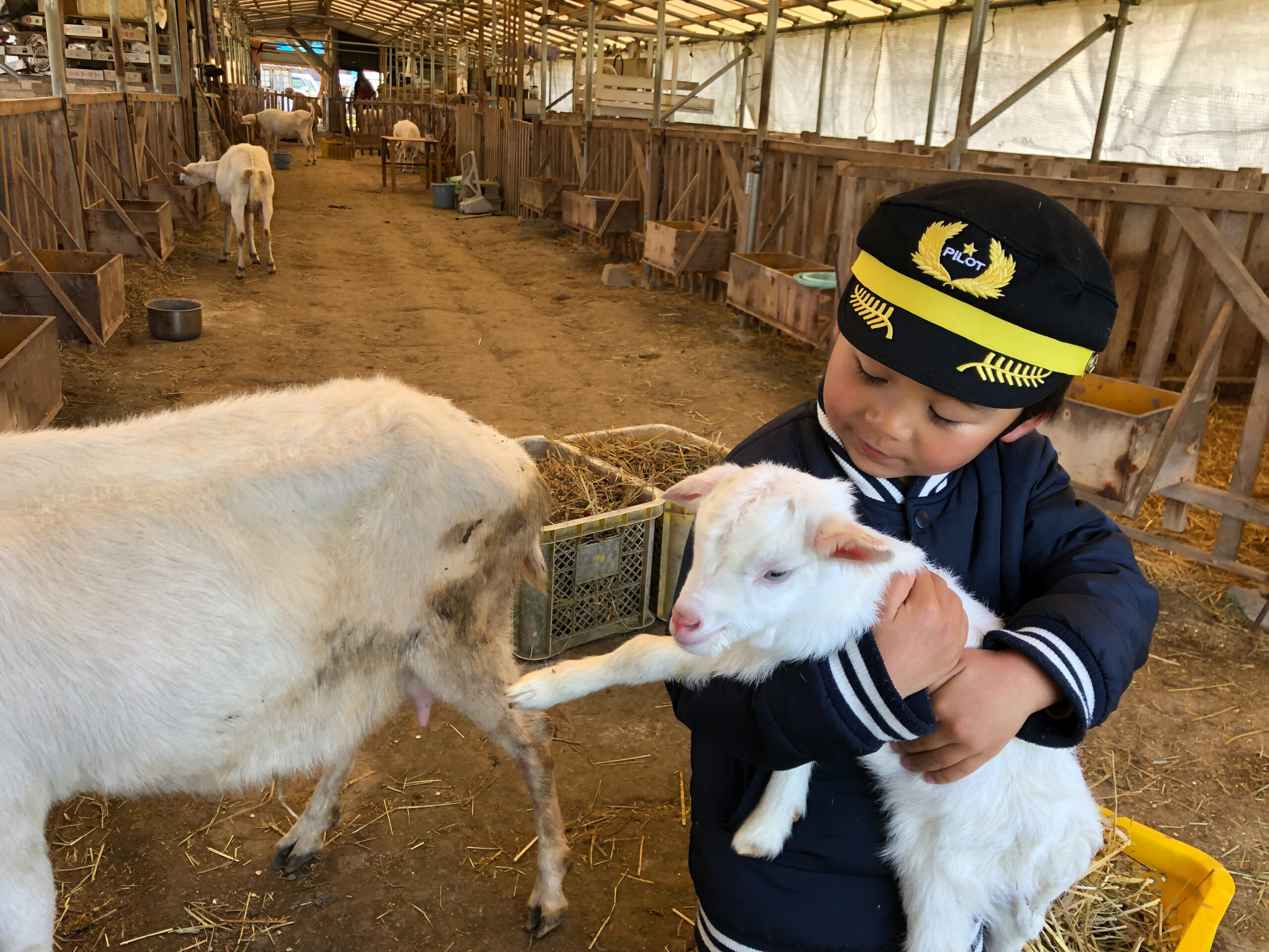 生まれたての子ヤギを抱っこ。もふもふで温かい