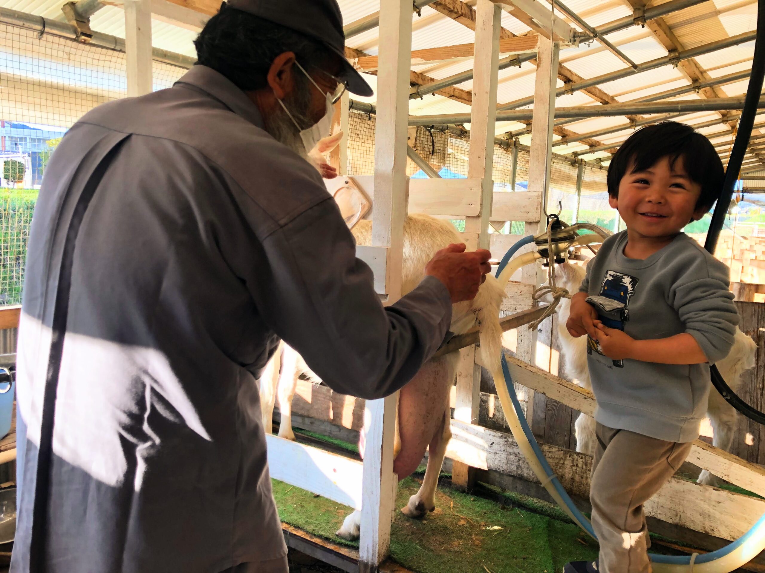 搾乳を間近で見せてもらったとき、当時2歳だった息子はキャッキャと笑って喜んでいました。