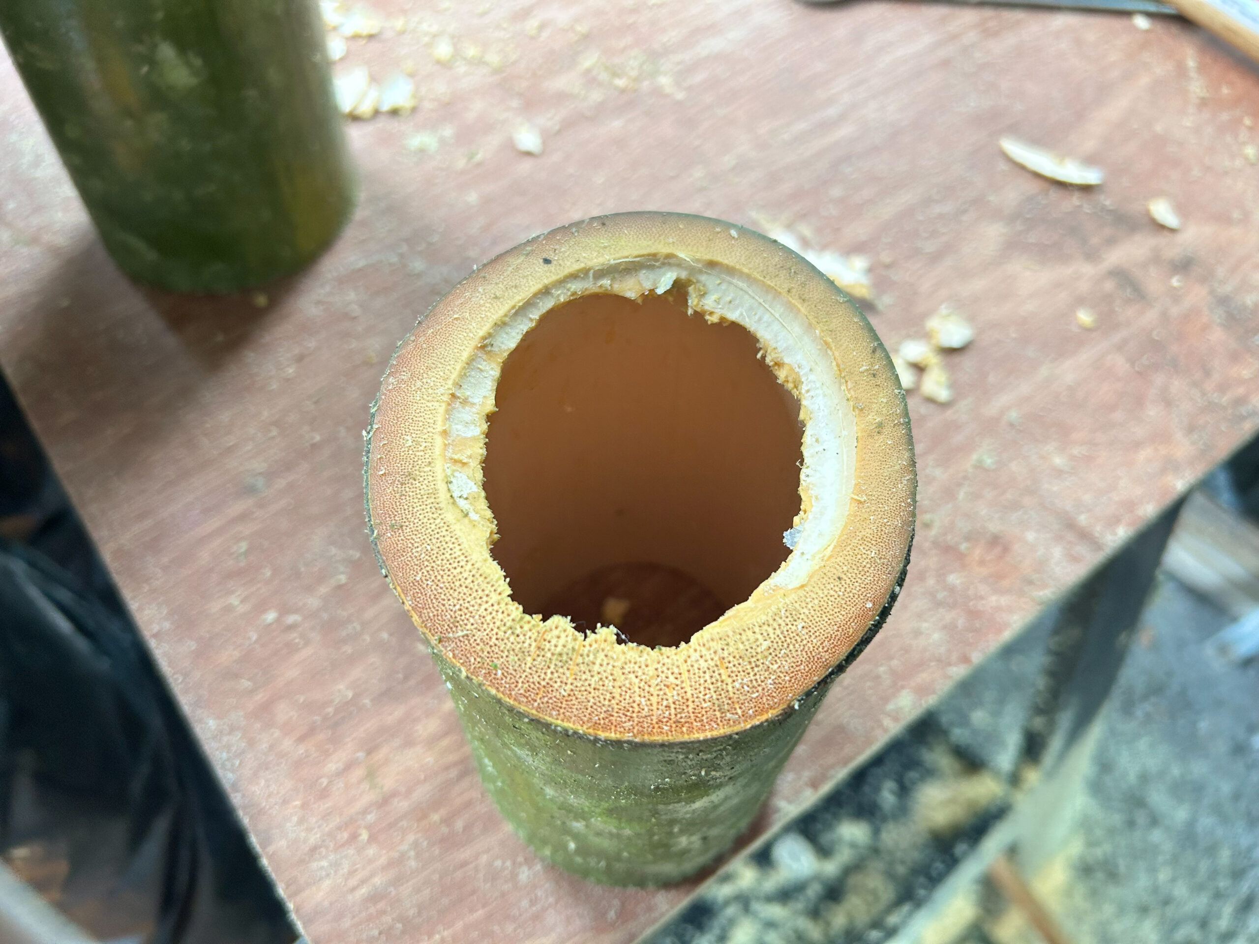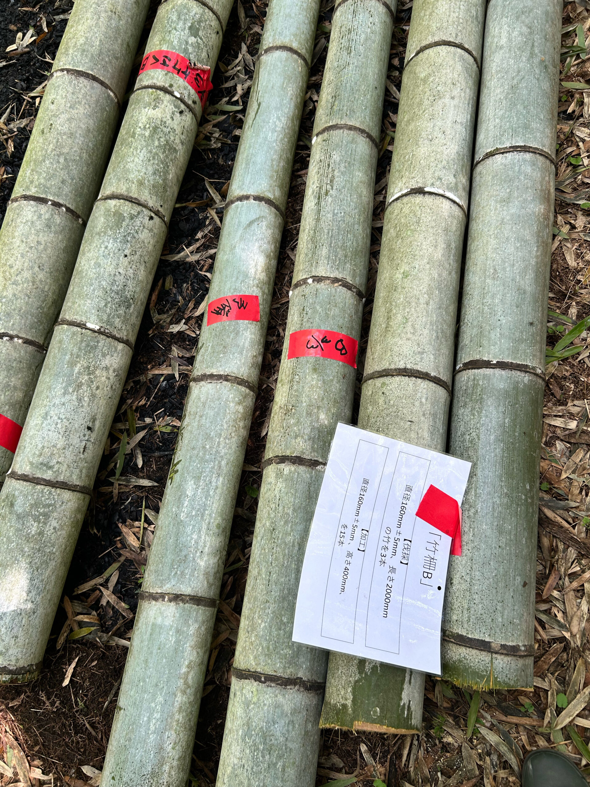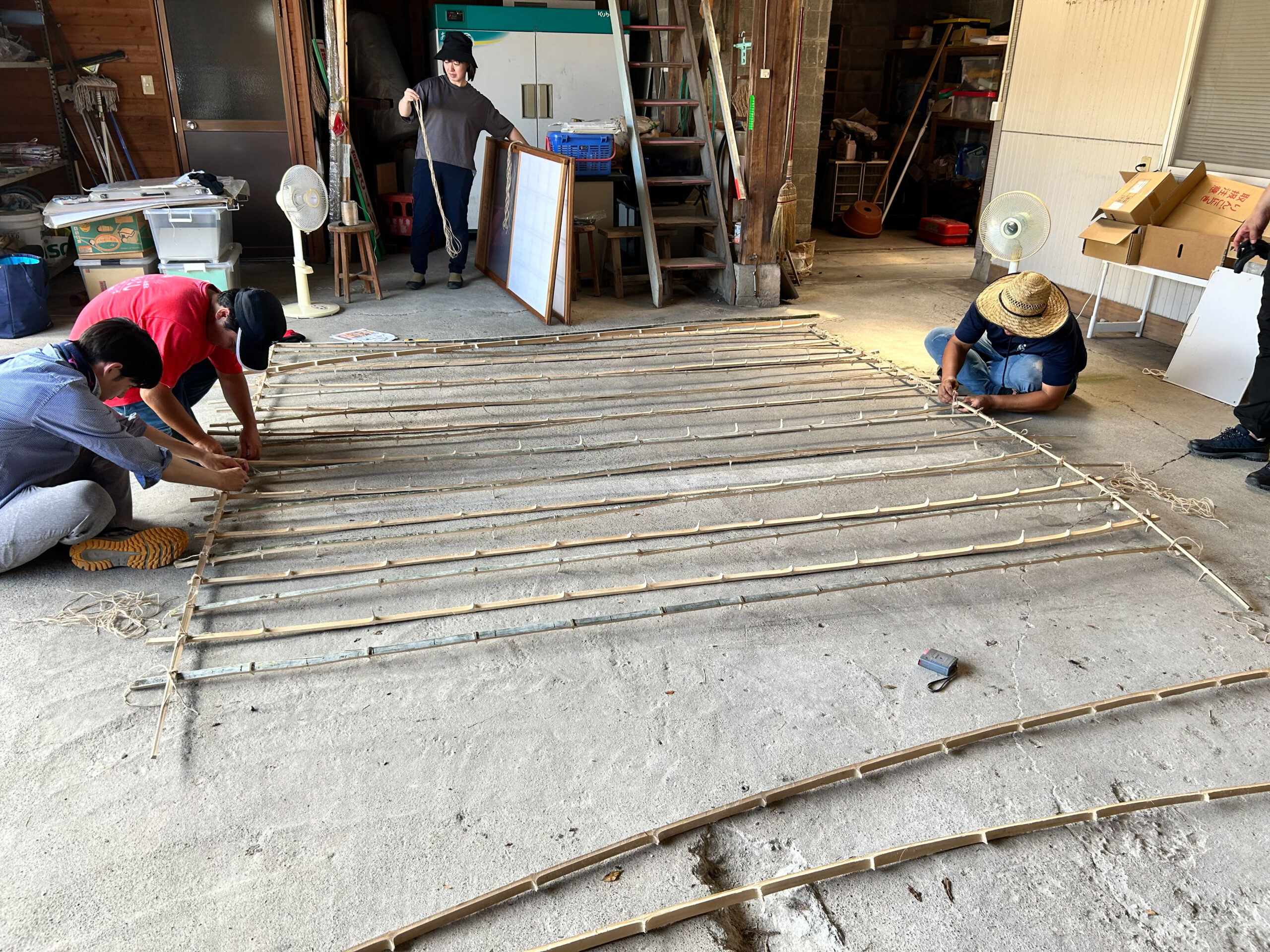 長さや太さを見ながら、使う場所に合った竹を一本ずつ丁寧に切り出していきます。これが思っていたよりずっと大変で、何メートルもある竹をまっすぐ切るには、経験と力がいることが分かりました。