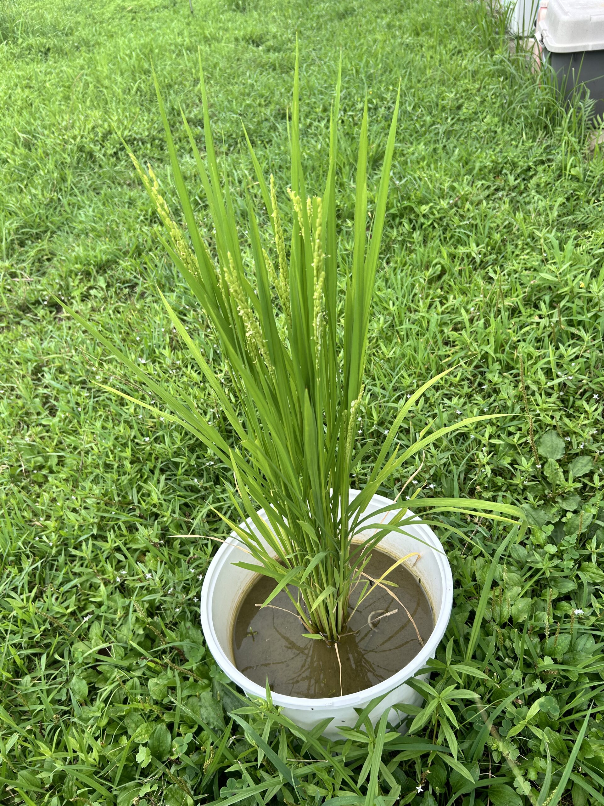今年はちょっとだけ実験気分で、ポットに“稲を1本だけ