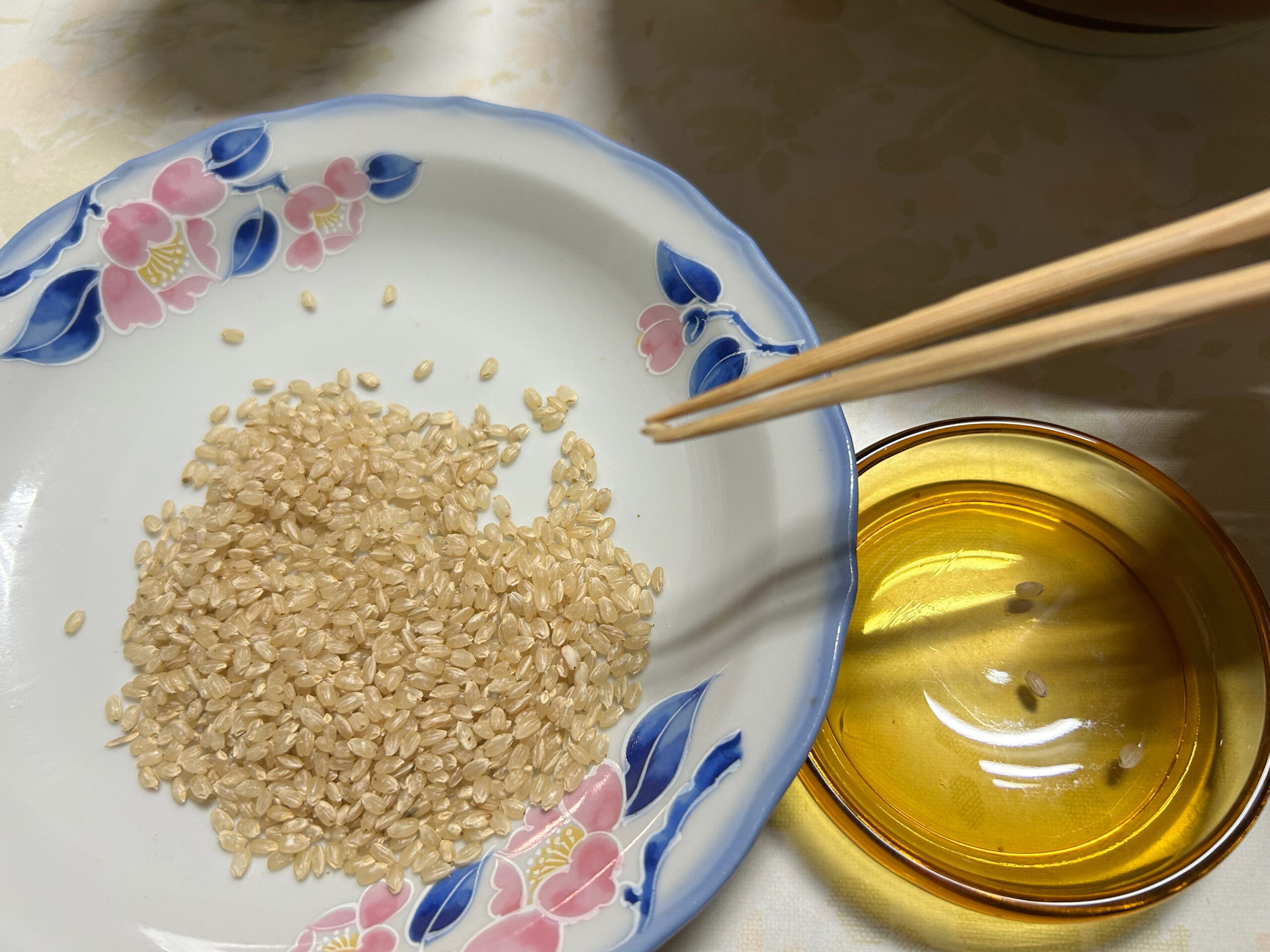 ときどき「ふぅー」と息を吹きかけて、籾殻を飛ばします。