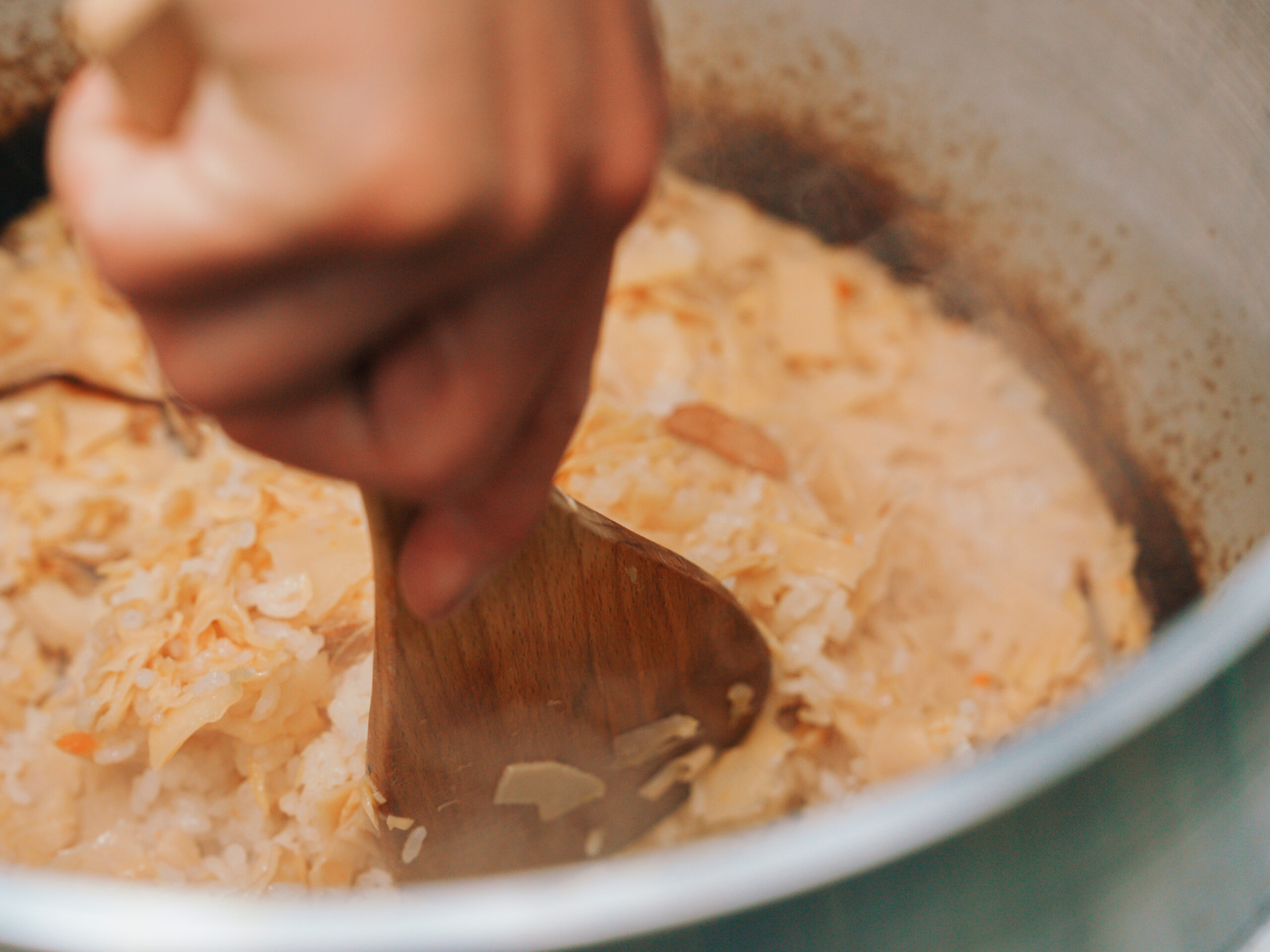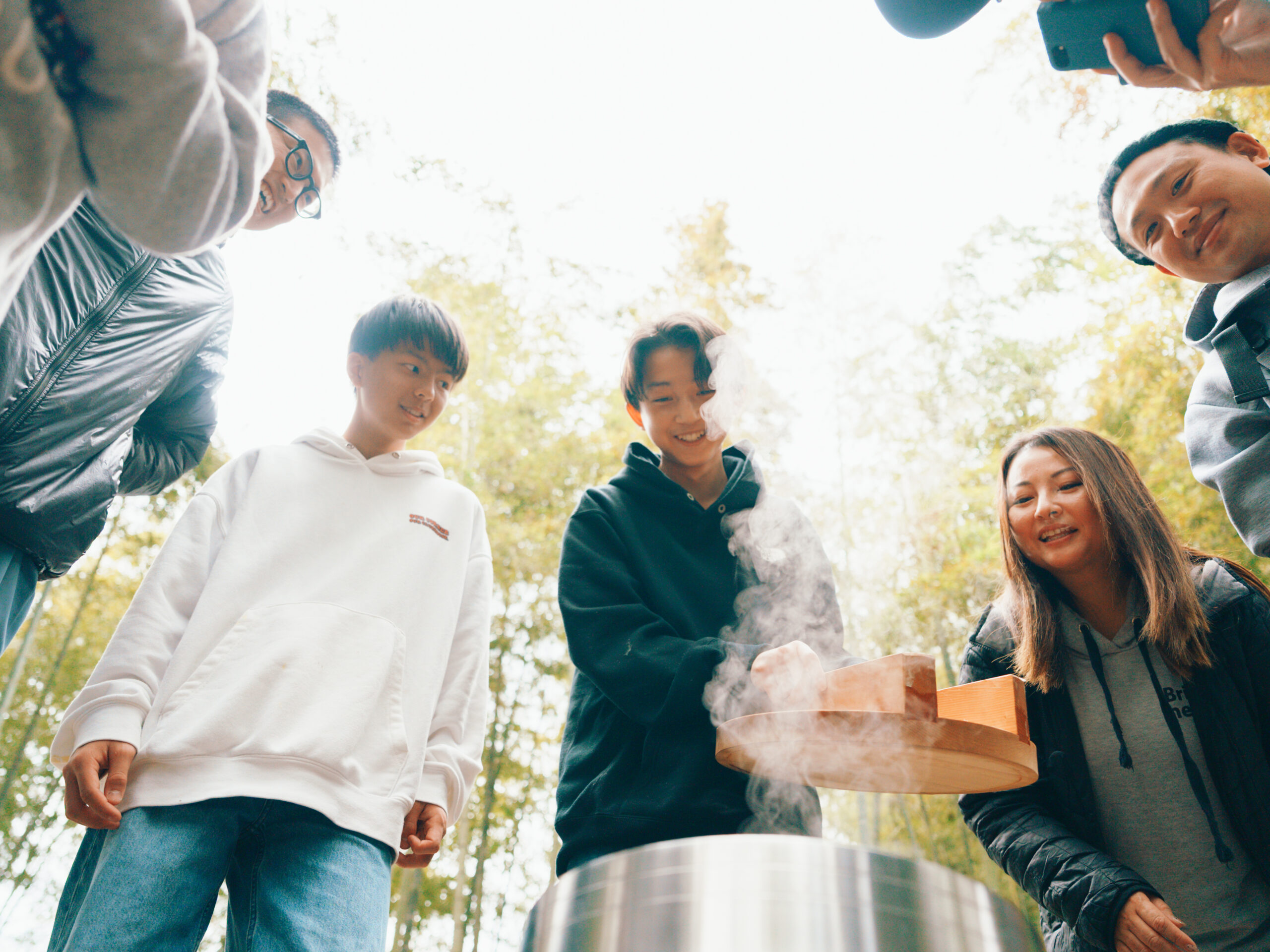釜戸ご飯体験では、あさぎりフレッシュフーズ様の「筍炊き込みめし」を使って調理しました。使用しているたけのこもあさぎり町で採れたもの。現地の竹林の中で地域の“おいしい”を味わう贅沢な時間となりました。