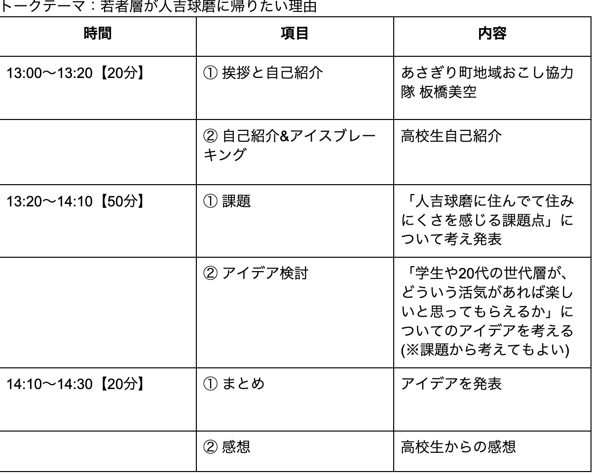 当日は約1.5時間ほどで、集まった高校生同士で自己紹介をしたり、地域の課題について一緒に考える時間をとりました。